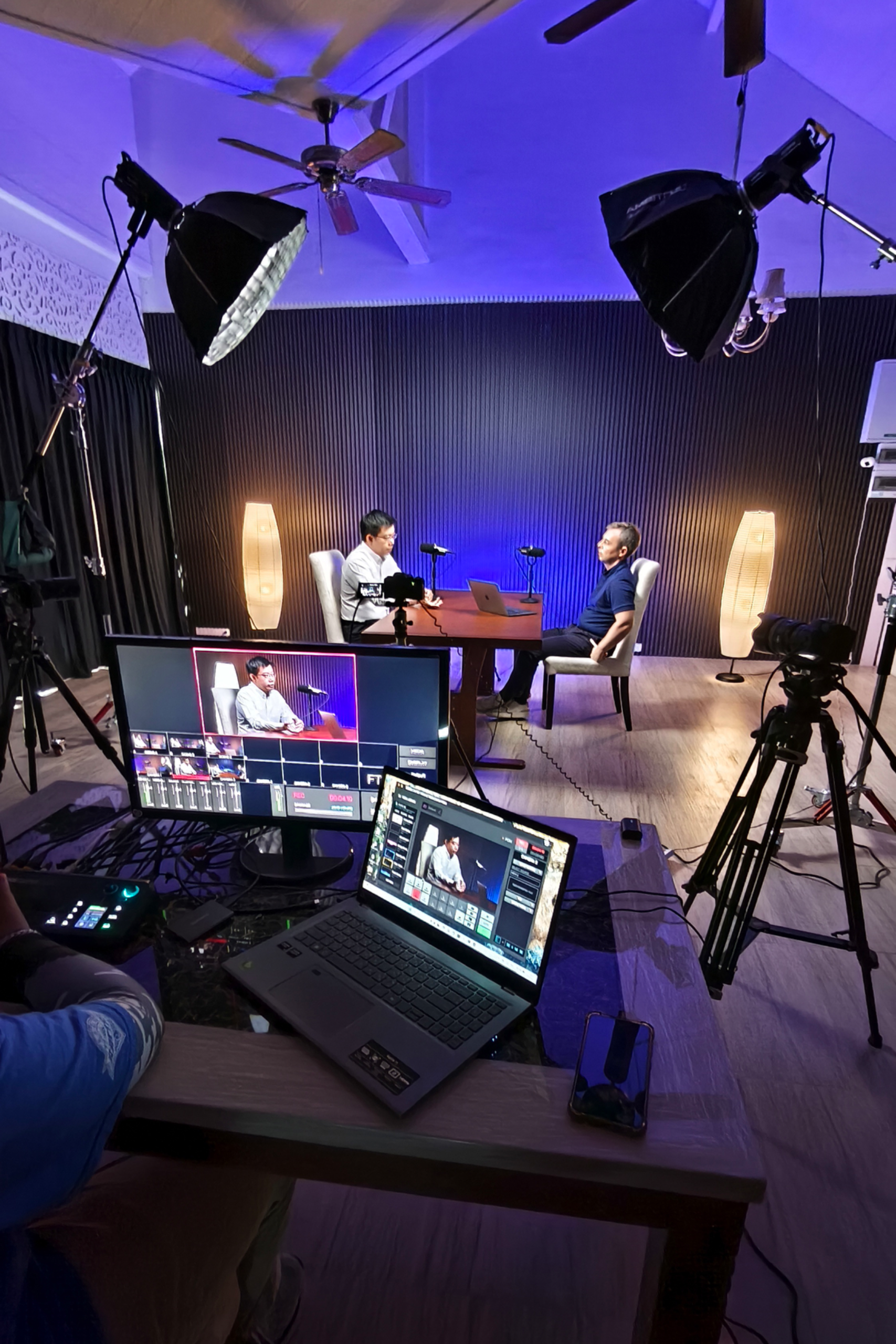 The only professional studio in Hua Hin. High-end microphones, multi-camera setup, and studio lighting. Ideal for interviews, courses, and expert blogs.